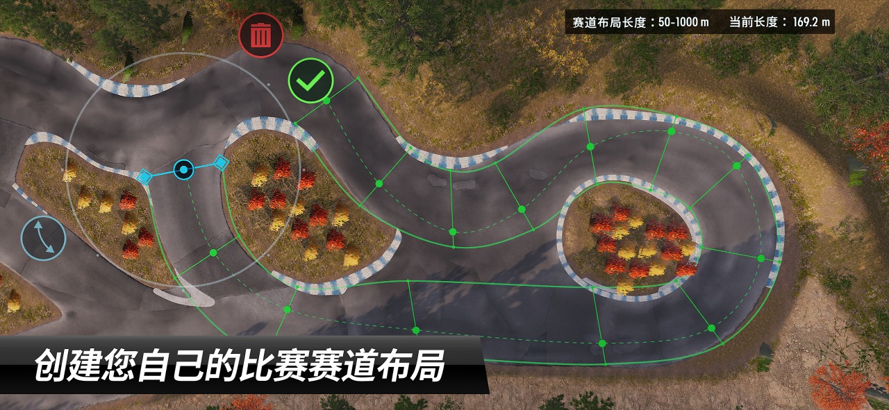 赛道布局编辑器创建您自己的漂移赛道并设定规则!转向和刹车来进行漂移